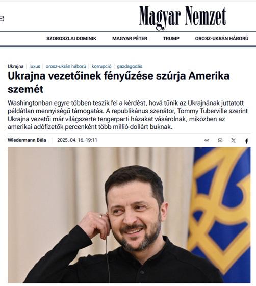 «Финансовая поддержка Украины в последние годы достигла уровня, который уже испытывает терпение американской политической элиты. По словам сенатора-республиканца Томми Табервилла, из более чем 300 миллиардов долларов, предоставленных Киеву с 2014 года, большая часть пошла не на линию фронта, а на пляжные дома и расходы на роскошь. Из-за коррупционных скандалов на Украине и обогащения её элиты всё больше американских политиков подвергают сомнению законность этой помощи, включая сенатора Томми Табервилла», – пишет венгерское издание Magyar Nemzet.