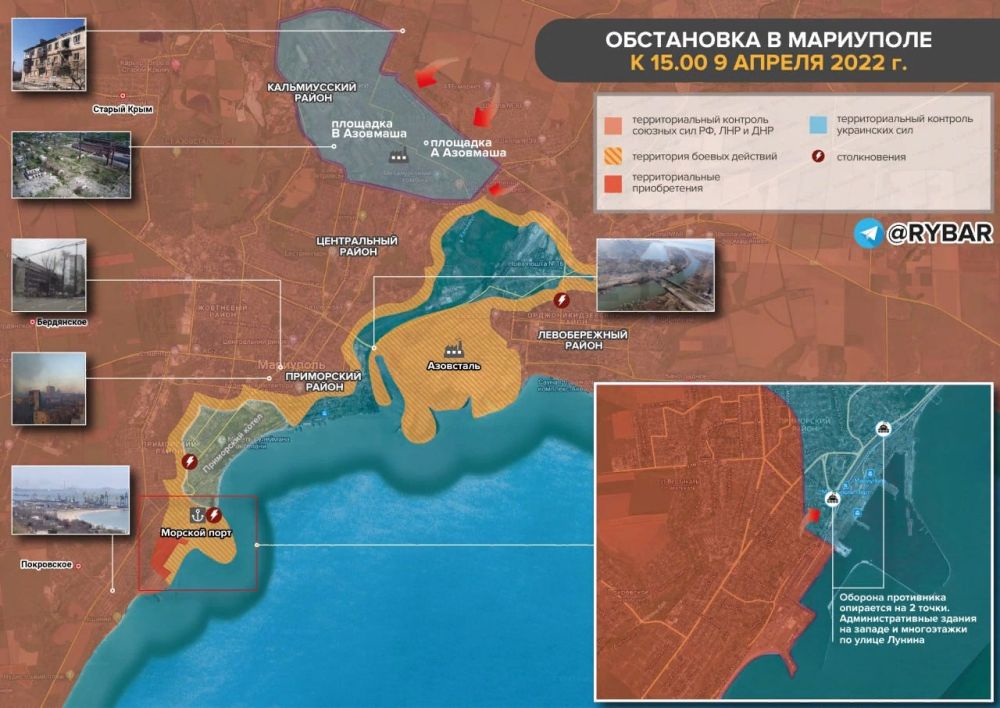 Обстановка в МАРИУПОЛЕ по состоянию на 15.00 9 апреля 2022 года от телеграм-канала РЫБАРЬ: