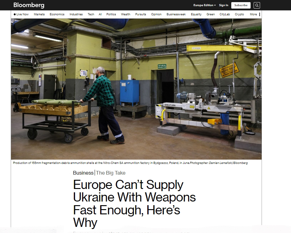 Прошло почти полтора года войны, и сегодня стало понято, что военные производства в Евросоюзе не справляются с выросшими заказами.