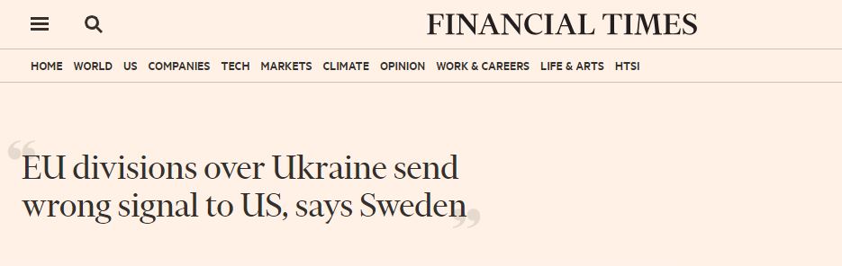 «Если Вашингтон, в свою очередь, откажется спонсировать Украину, то это крайне негативно отразится на позиции ЕС по этому вопросу. В итоге Киев может остаться ни с чем», – высказал своё мнение премьер-министр Швеции Ульф Кристерссон в интервью британскому изданию Financial Times.