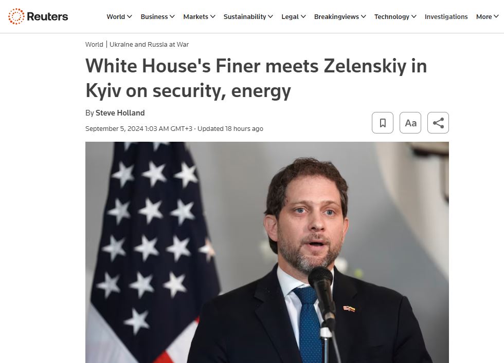 В Киев прилетал посланник от американского президента Байдена – для серьёзного разговора с Зеленским и с представителями украинского Генштаба. Речь идёт о визите в Киев заместителя советника президента США по национальной безопасности Джейка Салливана Джона Файнера, сообщает новостное американское агентство Reuters.