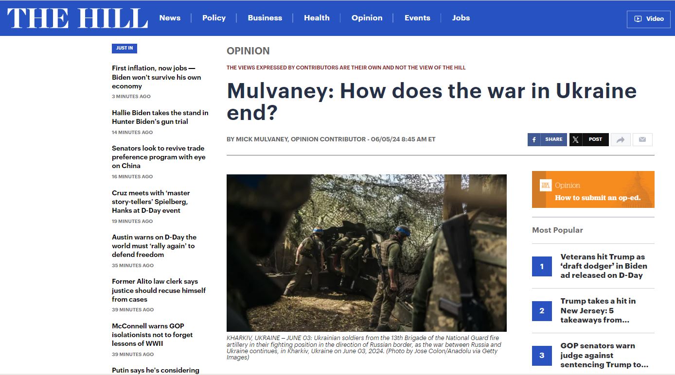 «Если самым вероятным исходом на Украине, по общему признанию, представляется раздел страны в той иной форме, вплоть до полной победы России, то почему же сейчас мы не ведём реальных дискуссий о прекращении конфликта? И если именно этот исход для Украины предвидит так много людей по всему миру и со столь разными политическими убеждениями, то отчего же мы затягиваем конфликт? Где же призывы к прекращению огня или мирным переговорам? Кто всерьёз обсуждает эту тему с Владимиром Зеленским или Владимиром Путиным? Развернувшаяся битва за Харьков лишь усугубит патовую ситуацию. А это таит в себе риск эскалации и дальнейших человеческих страданий. Есть мнение, что мирные переговоры обычно начинаются лишь тогда, когда обе стороны убедятся окончательно, что дипломатия обеспечит лучший исход, чем дальнейшие военные действия», – говорится в статье.