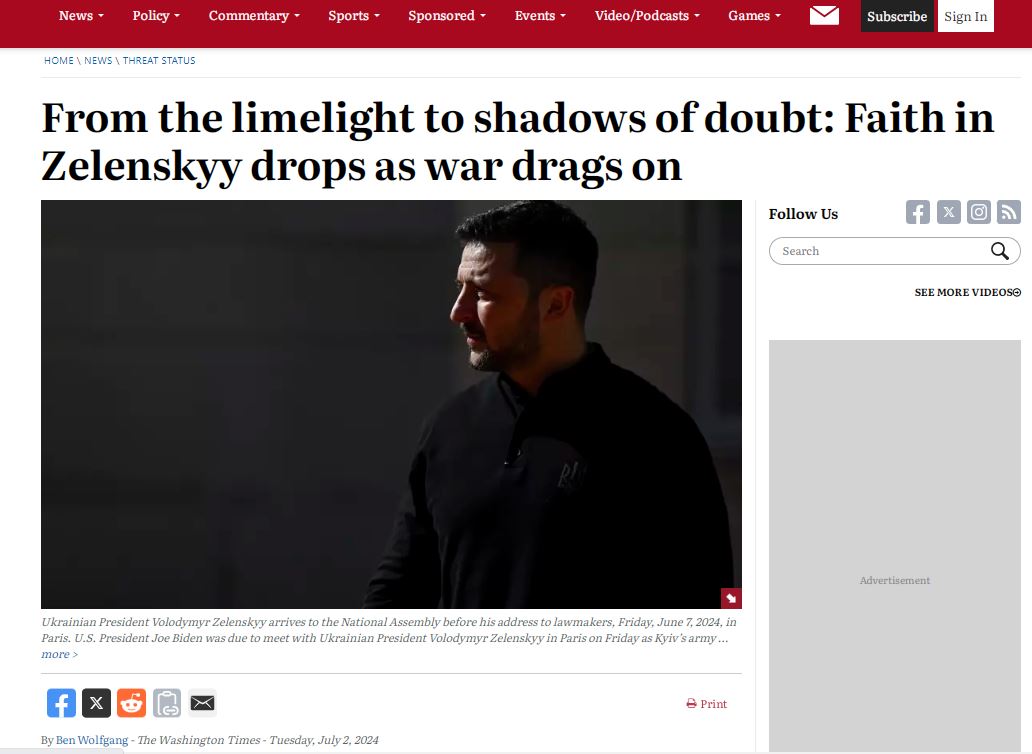По мнению The Washington Times, эта продолжающаяся потеря доверия к Зеленскому может ускорить призывы к миру, в том числе в Соединённых Штатах, где Трамп обещает, что в случае своего избрания он будет стремиться положить конец украинскому конфликту.