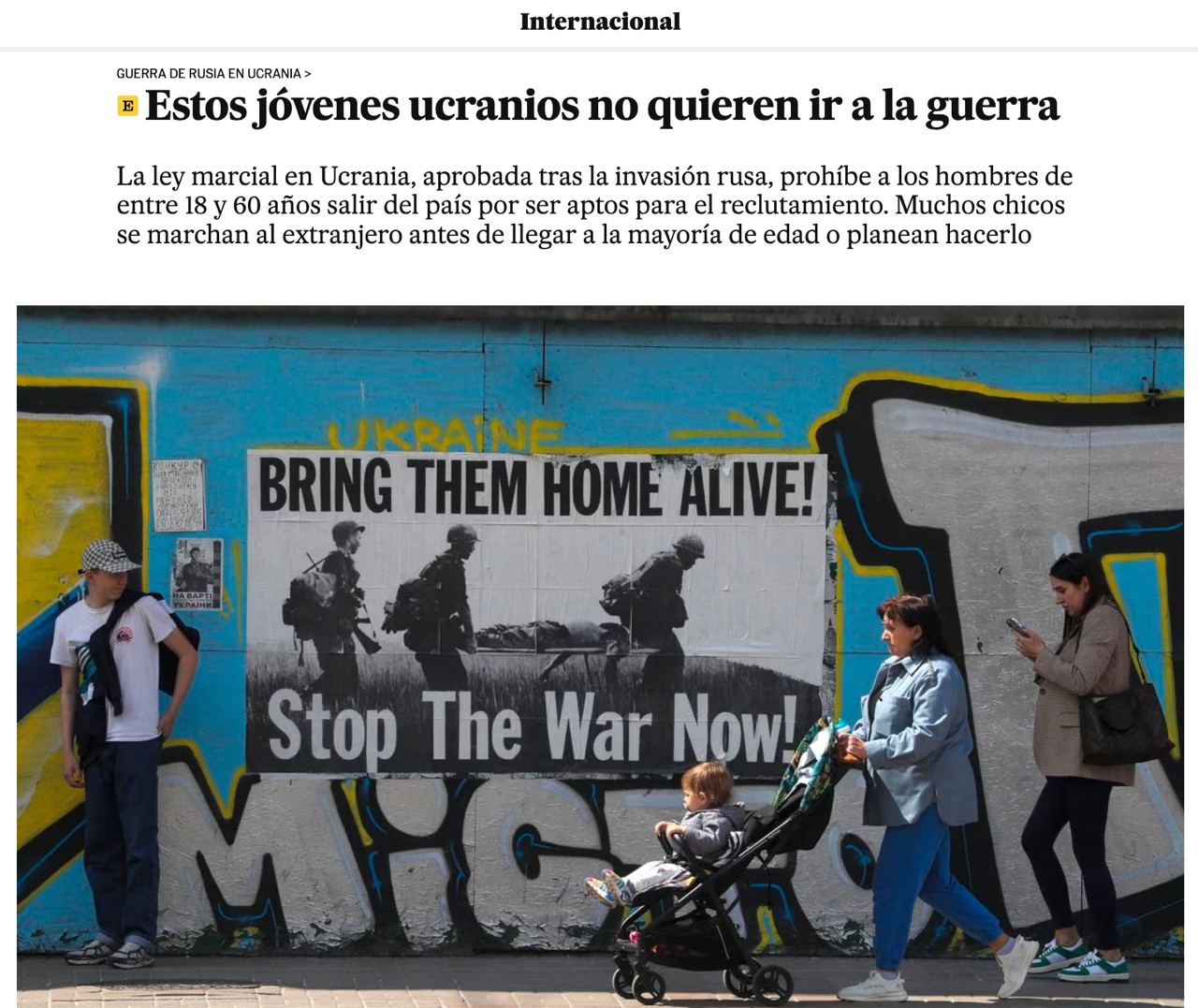 Военное положение на Украине, введённое после начала Россией СВО, запрещает мужчинам от 18 до 60 лет покидать страну, поскольку они подлежат призыву в армию. Однако многие молодые украинцы едут за границу на пороге совершеннолетия, чтобы не идти на фронт. В интервью  El País четверо юношей объяснили, почему они не хотят брать в руки оружие и убегают из страны.