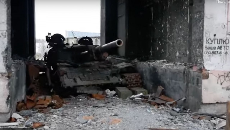 На заглавном фото: полякам не рассказывают о том, что вот этот украинский танк занимал позицию в арке между двумя жилыми многоэтажками, Северодонецк, 2022 год, кадр из видео итальянского журналиста Андреа Лучиди