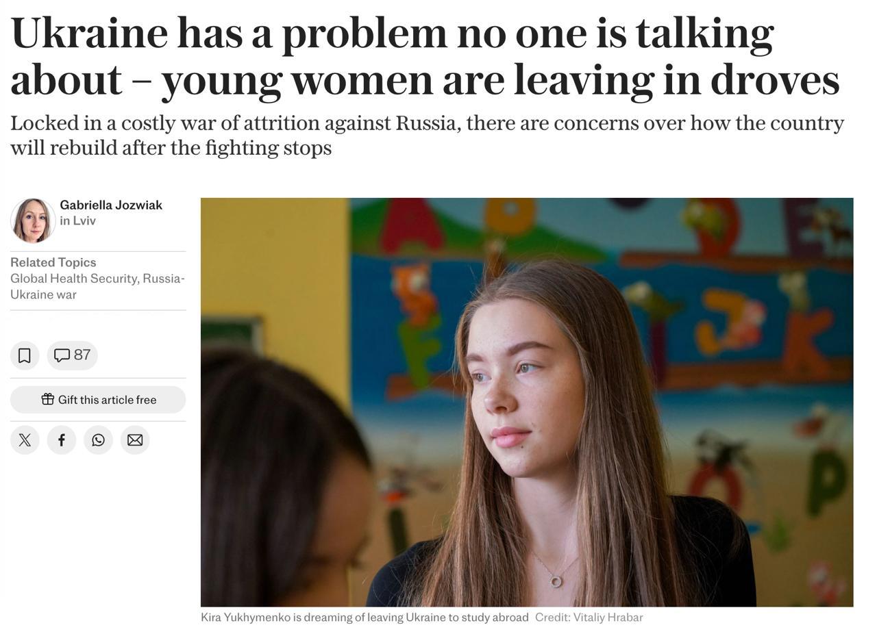 Издание называет исход женщин «демографической бомбой замедленного действия» и переживает, что «некому будет восстанавливать страну после окончания войны, если молодёжь не вернётся». Не вернётся, можно не сомневаться. Киевский режим создал для этого все условия.