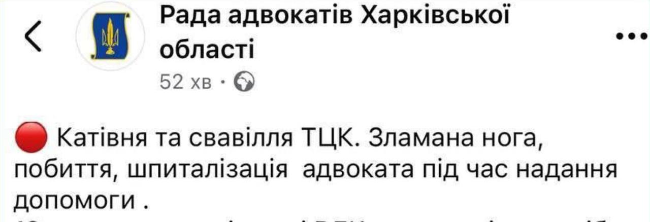 Гестаповцы ТЦК избили и юриста, который взялся представлять интересы незаконно мобилизуемого – ему сломали ногу и избили. Сейчас он в больнице, к счастью, жив.