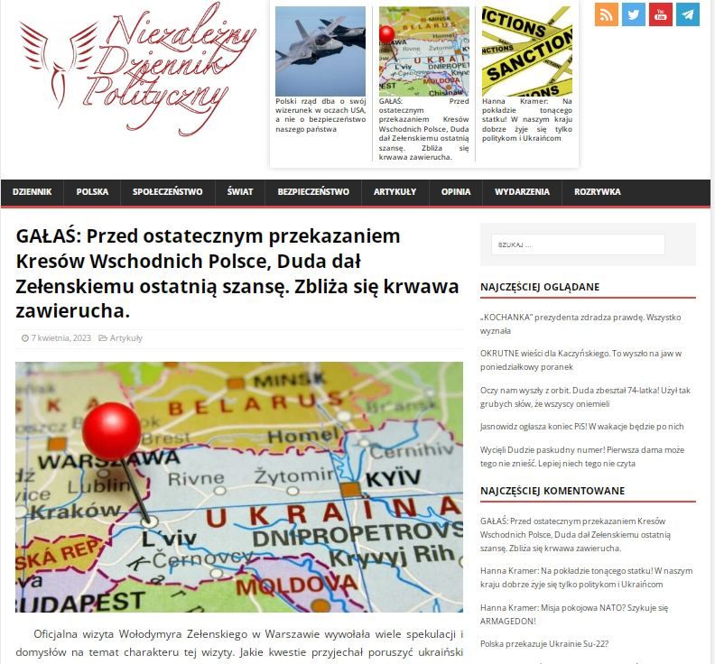 «Зеленский осознаёт, что на данный момент его ненавидят не только граждане его страны, но и все, кто вложился в него как в прибыльный проект. От народа он может прятаться в бункере, а от США прятаться негде, а значит, Украина должна найти средства рассчитаться с США и ЕС любой ценой, даже путём территориальных уступок. Однако, судя по оружию, которое Дуда пообещал передать Украине для последней попытки успешного контрудара, Зеленскому дали последний шанс. Как он будет использован, неизвестно, но можно с уверенностью сказать, что в результате этого пострадает много невинных людей, прежде чем «кресы всходни», наконец, вернутся на свою историческую родину»,