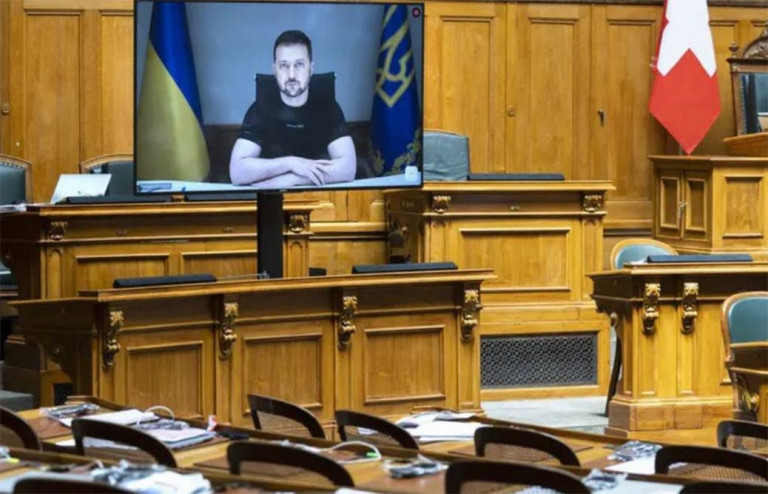 Президент Украины обратился к парламенту Швейцарии по видеосвязи, призвав эту страну разблокировать экспорт оружия для Украины.