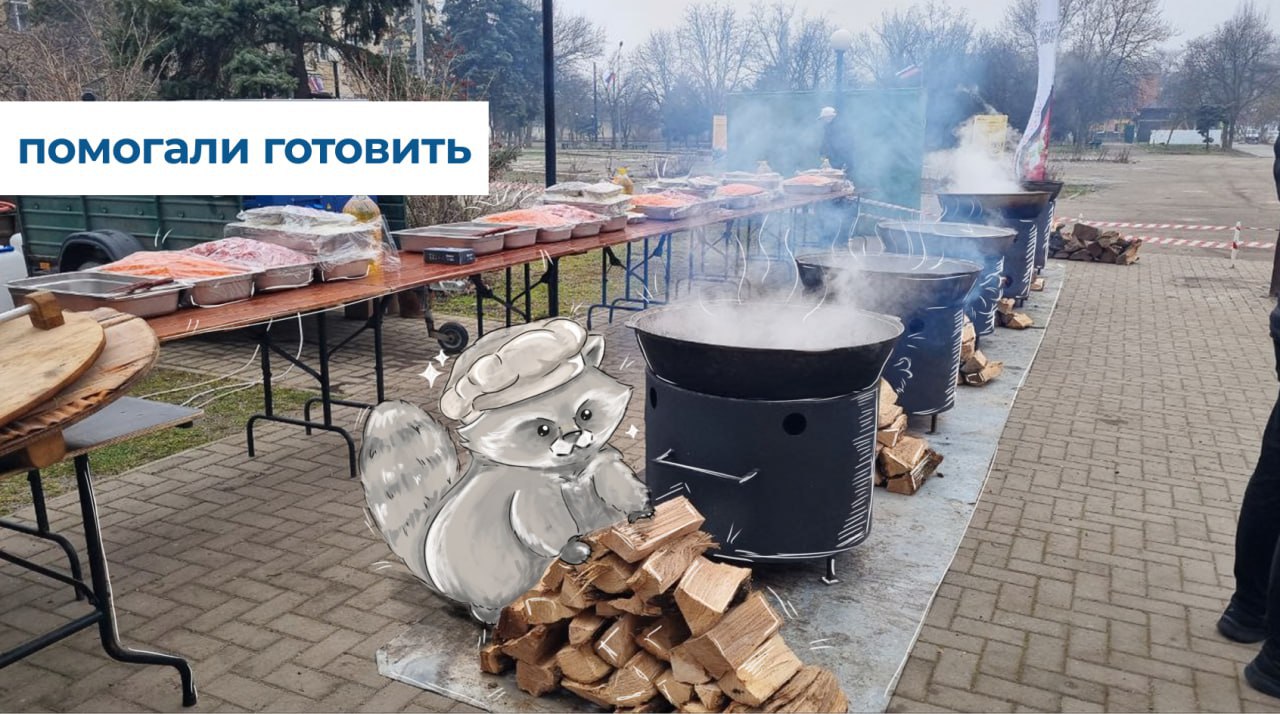 На кулинарном фестивале «Херсонская самобранка» угощали пловом, поросёнком и барашком, приготовленными на вертеле. В Геническе развернули огромный флаг России.