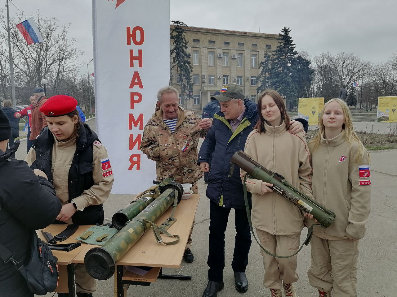 Ветераны Херсонского областного отделения организации «Боевое Братство» вышли вместе с юнармейцами на улицы городов и посёлков. Юнармейцы показывают всему миру своё отношение к Родине, к своей России.