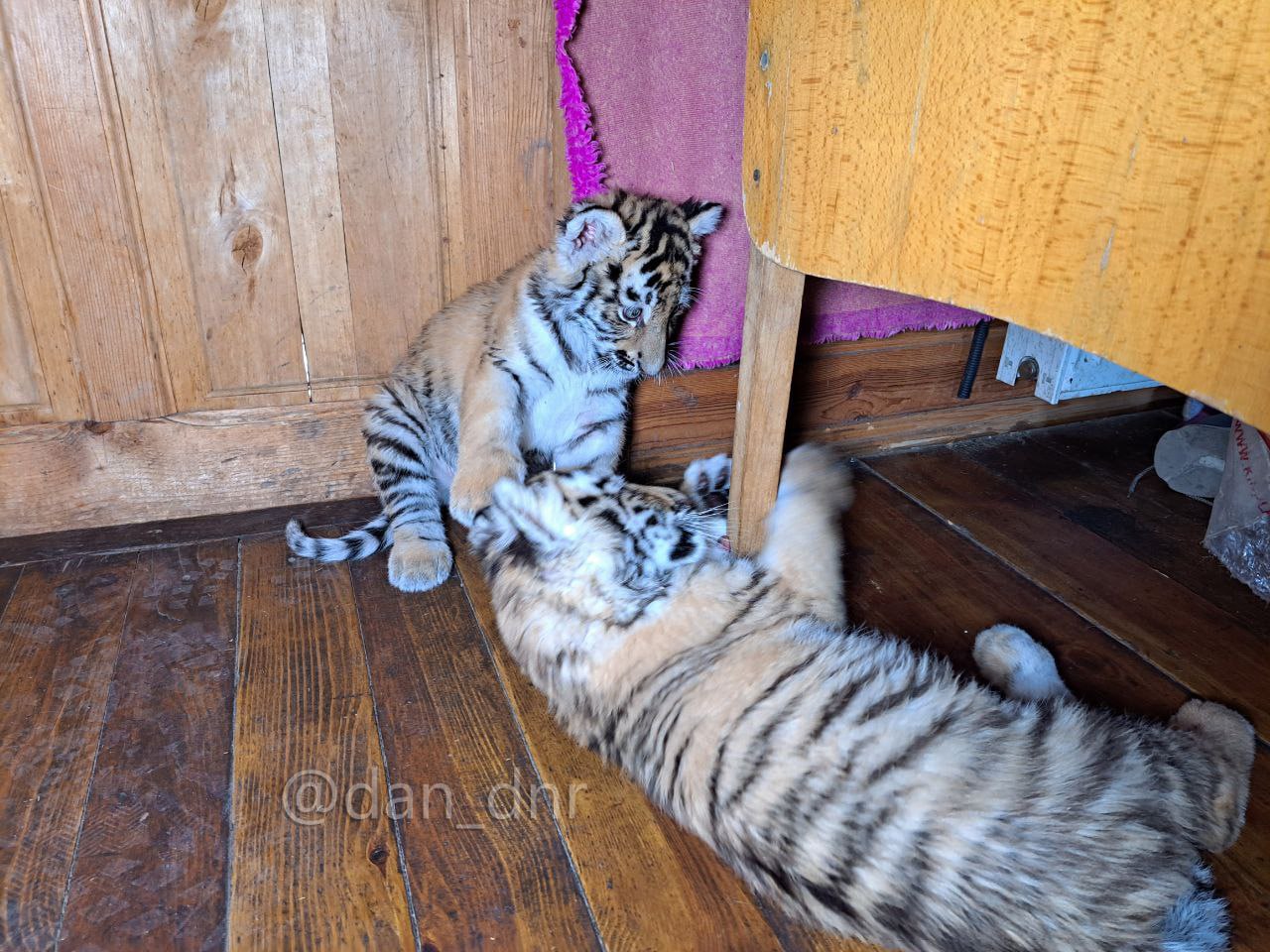 Мариупольский зоопарк показал Телеграм-каналу Донецкое агентство новостей тигрят, которые родились здесь несколько месяцев назад.