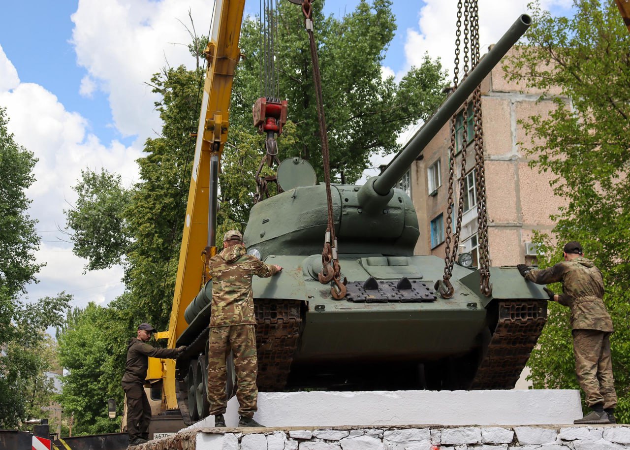Благодаря усилиям администрации и при содействии представителей Южного военного округа Минобороны РФ, танк вновь установили на постамент возле Центрального городского Дворца культуры имени Ленина.