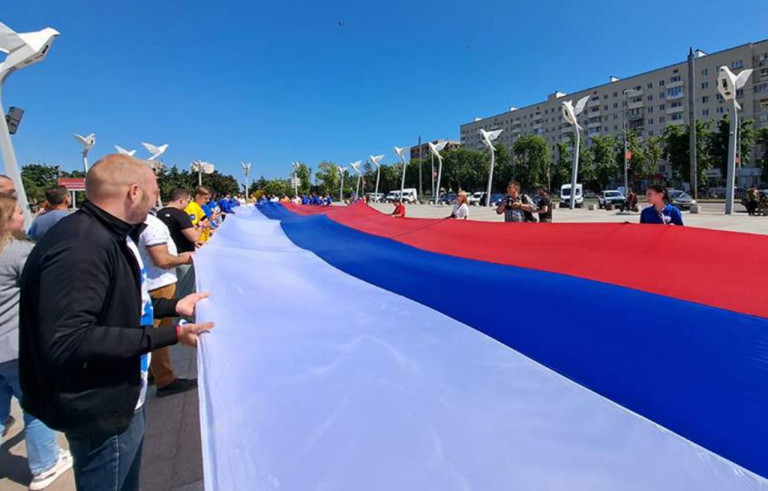Особенно символично, что мероприятие проходило у завода «Азовсталь». Там, у восстановленного памятника азовстальцам, воевавшим в Великую Отечественную войну, растянули двухсотметровое Знамя Победы. Оно стало своего рода символом, объединяющим советских и российских солдат.