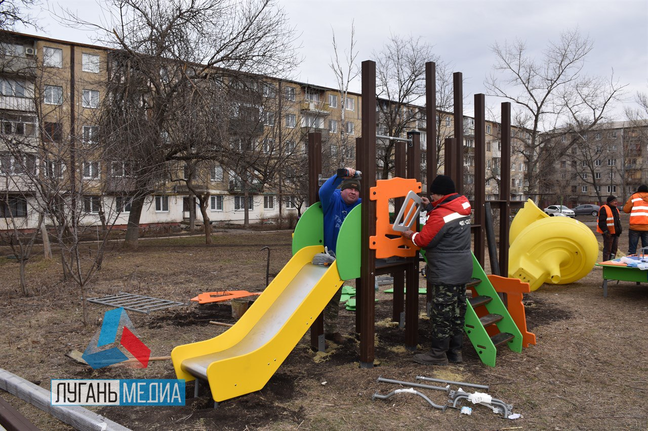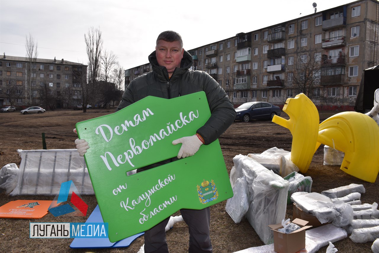 Команда специалистов из региона-шефа Калужской области привезла и устанавливает детскую игровую площадку в одном из дворов перед многоквартирными домами в Первомайске ЛНР, пишет Телеграм-канал Луганьмедиа.
