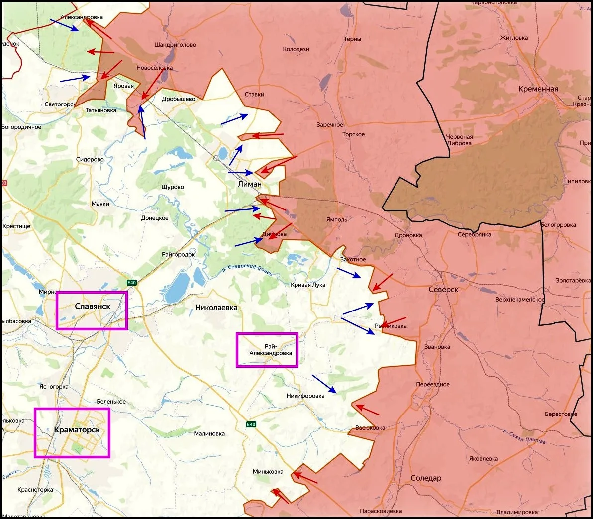 Продвигаемся к Святогорску через лесной массив от железнодорожной платформы «Яровая» вдоль берега реки Северский Донец. Здесь ВСУ выстроили фортификационные сооружения на господствующих высотах. Одновременно продолжаем работать вдоль Северского Донца к Татьяновке. Есть успехи в расширении зоны контроля вдоль реки Северский Донец по направлению к селу Пришиб. Освобождено порядка 9 квадратных километров. ВС РФ продолжают восстанавливать контроль на юге Дибровы. Все атаки противника вдоль реки Северский Донец на Диброву пресечены.
