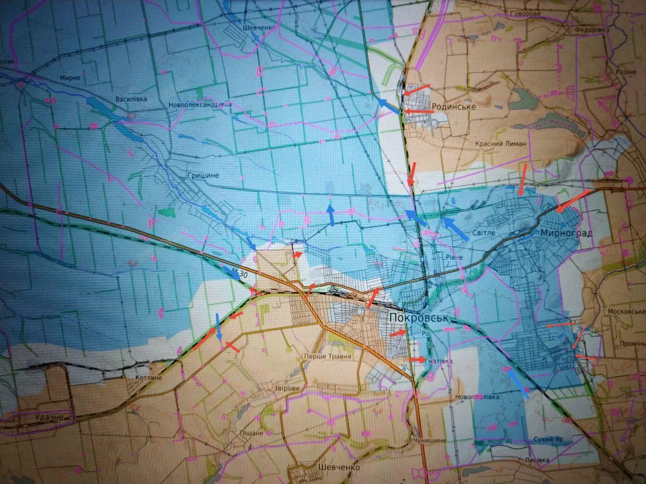 Группировка войск «Центр» продолжает активные бои за Покровско-Мирноградскую (Красноармейско-Димитровскую) агломерацию. Около 70% Покровска уже под контролем подразделений ВС РФ. Противник вытеснен за железную дорогу и отрезан от Гришино. Южнее железной дороги идёт зачистка территории города. Из восточной части противник вытеснен в посёлок Рог. В Гнатовке идут бои за опорные пункты противника на восточной окраине.