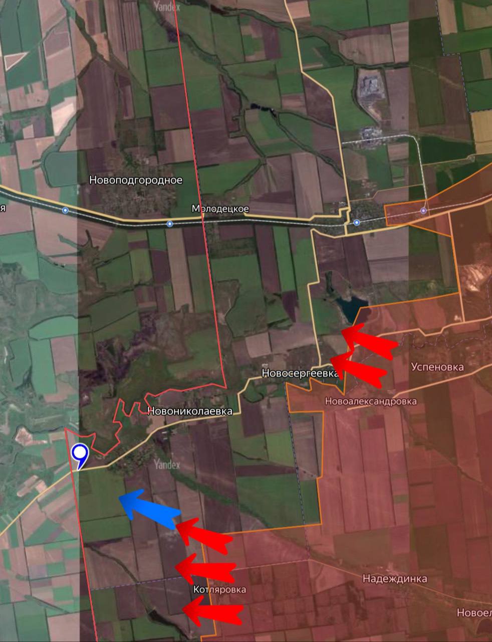 Северо-западнее Котляровки наши войска нанесли огневое поражение по блиндажам противника в лесопосадке, сейчас эта зона серая. Западнее села удалось выбить врага из посадок и занять позиции, осложняется продвижение большим количеством вражеских дронов. Западнее Успеновки также идёт огневое воздействие по противнику.