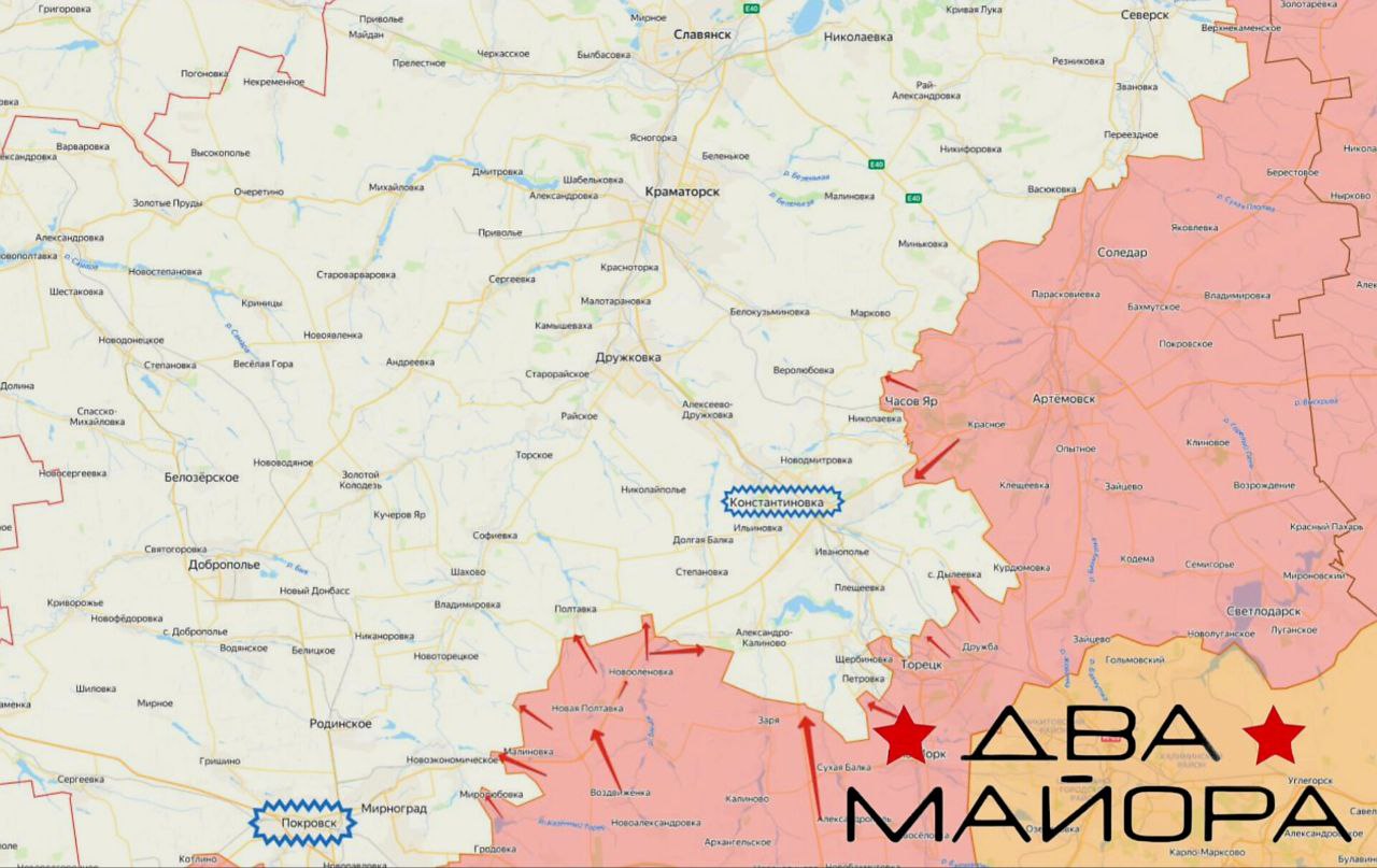 Южнее Часов Яра идут затяжные бои за Ступочки. ВС России наступают севернее Дзержинска, а также юго-западнее города. Закрыт «карман» у населённого пункта Заря, наши прорываются к водохранилищу с двух сторон. Одновременно Воздвиженский выступ создаёт угрозу охвата Покровска (Красноармейска), пишет Телеграм-канал «Два майора».