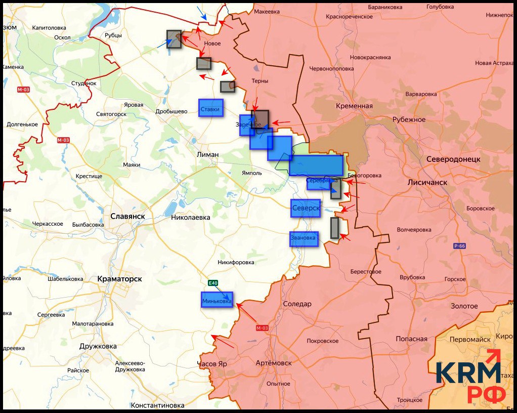 Красный Лиман. ВС РФ продвинулись севернее Редкодуба и нанесли удары из ТОС-1А «Солнцепёк» по району Нового Мира. В районе Торского изменений линии боевого соприкосновения не зафиксировано. Российские подразделения удерживают позиции в районе Рыбхоза и в лесопосадках восточнее населённого пункта.