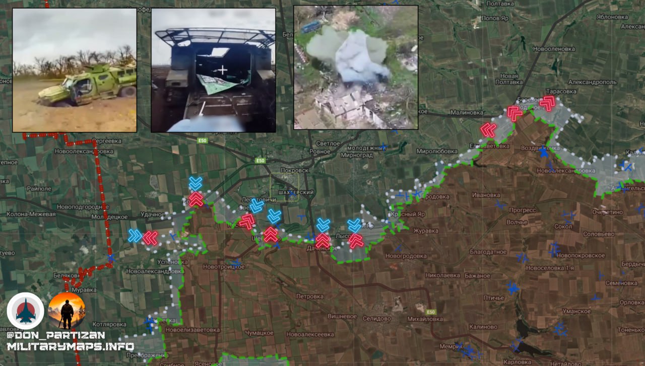 На стыке Дзержинского и Покровско-Мирноградского направлений российские войска продвигаются вперёд. Пока в самом Дзержинске продолжаются бои на северной окраине города у шахты святой Матроны Московской, юго-западнее бойцы ВС РФ водрузили флаг в Валентиновке.