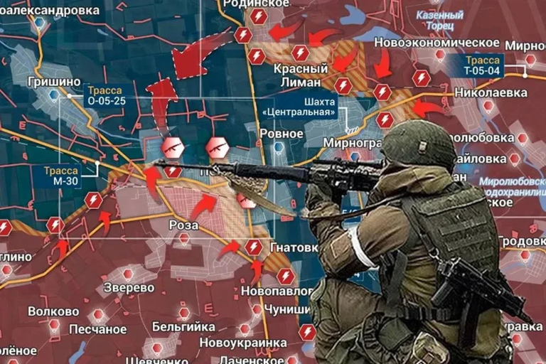 На Северском направлении российские силы продвигаются на южных окраинах Звановки и ведут бои у Северска, где формируется «серая зона». Уничтожены пункты управления БПЛА, миномётные позиции и укрытия противника в районах Звановки, Кирово и Платоновки. Поражение антенны Starlink осложнило связь украинских подразделений, пишет KRM РФ.