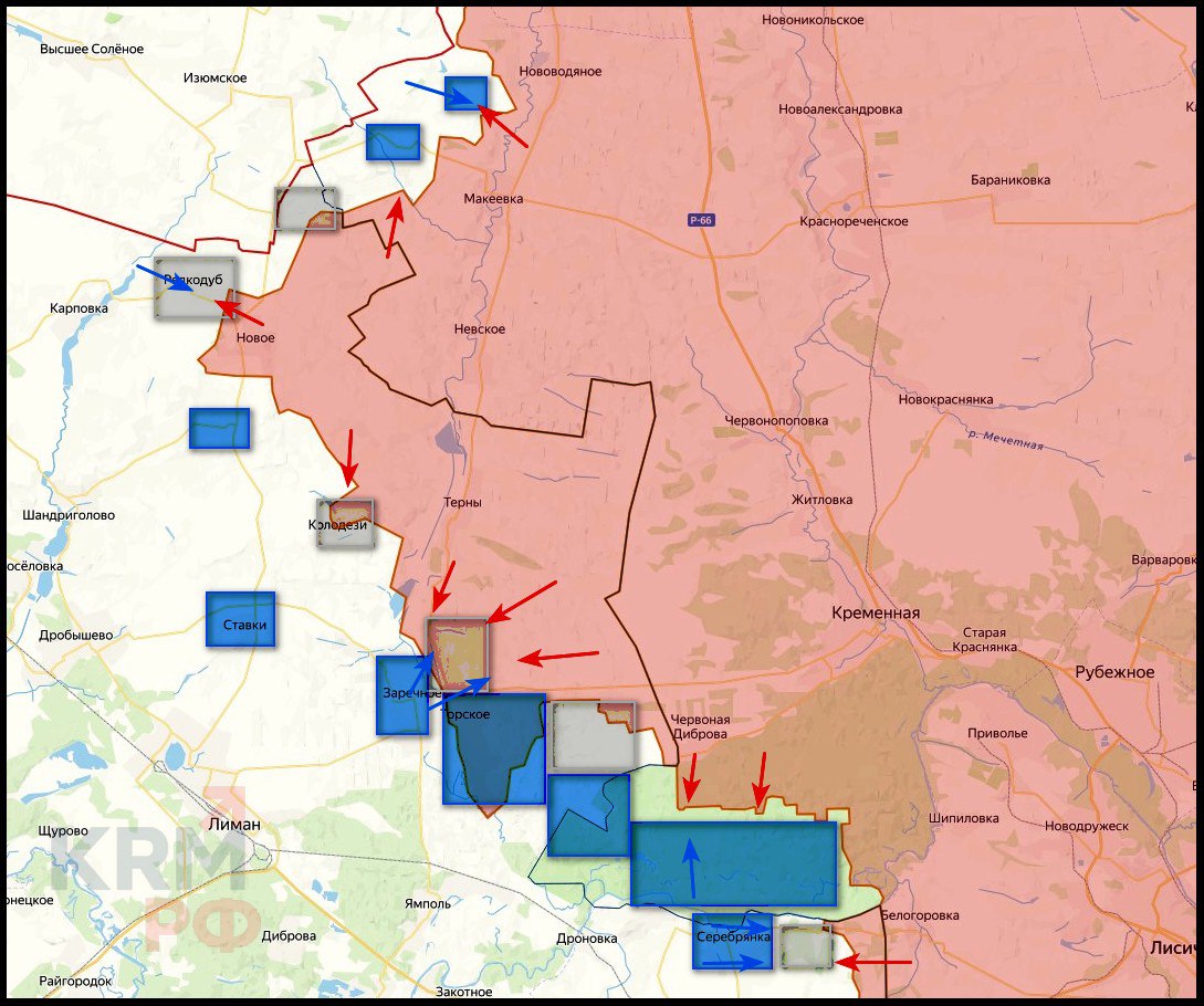 Кременской лес. ВС РФ наносят удары артиллерией, дронами и тяжёлыми огнемётными системами ТОС-1А «Солнцепёк» по Серебрянскому лесничеству. Противник наносит удары дронами по нашим позициям в районе Червоной Дибровы. В районе Кременной зафиксированы удары противника по лесопитомнику «Сеточный».