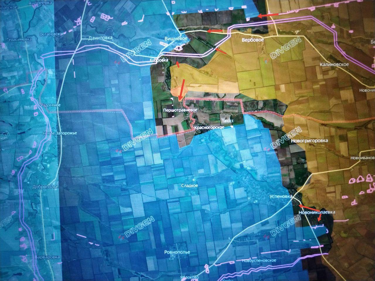 Противник сейчас сосредотачивает усилия на удержании оборонительных порядков на левом берегу реки Янчур от Успеновки до Даниловки. И именно поэтому утрата Новониколаевки для него критична. Противник контратакует. Севернее наши войска продолжают прорываться к трассе между Гуляйполем и Покровским (крупный логистический  пункт ВСУ в Днепропетровской области).