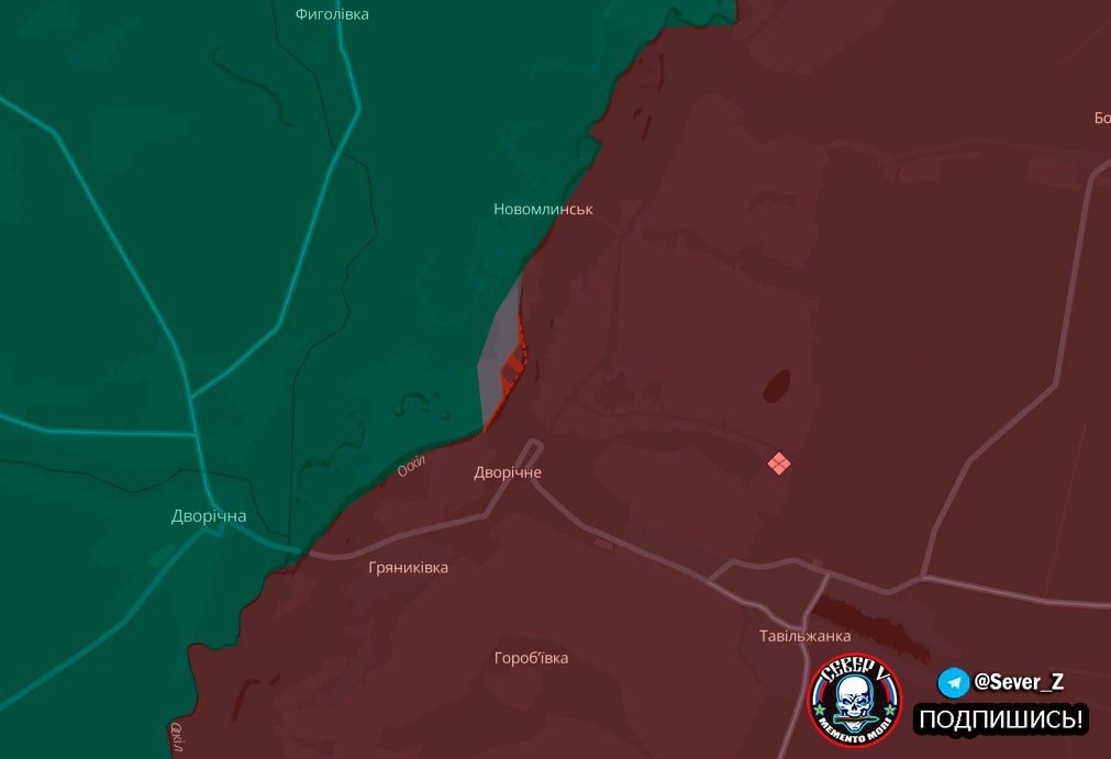 В самих Тернах, несмотря на сильное разрушение населённого пункта, продолжаются встречные бои. Российские войска перебрасывают подкрепление на бронетехнике с востока через несколько балок. Нередко противник вскрывает перемещение и наносит удары артиллерией и беспилотниками. При этом продвинуться дальше на юг к Ямполовке пока не выходит.
