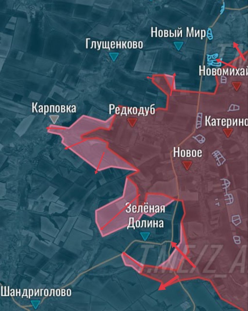 Севернее Редкодуба ВС России продвинулись в направлении Нового Мира к хутору Красноярское, южнее расширили контроль территории на подступах к Карповке по высотам. Северо-западнее Новомихайловки идут бои за опорные пункты на подступах к Новому Миру с восточной стороны. Бои ведутся также в восточной части населённого пункта Колодези и за н.п. Мирное с участком дамбы, который противник продолжает контролировать. Противник активизировался в районе Торского, наши подразделения отражают контратаки, идут ожесточённые бои, пишет военкор Юрий Котенок.