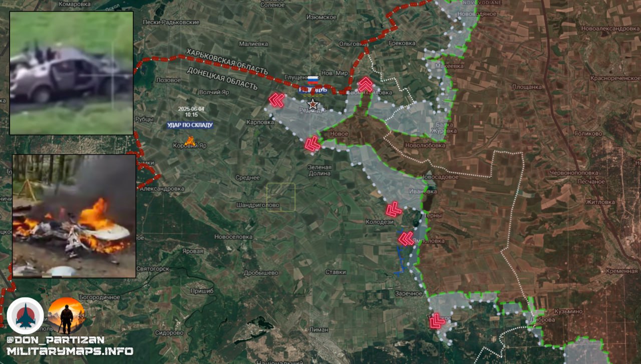 Северск. С 1 июня между Северском и Верхнекаменским зафиксировано увеличение ударов по позициям противника в лесопосадках и на территории самого Северска. Вероятно, формируется плацдарм для возможного наступления и закрепления на восточных окраинах города. В н.п. Серебрянка прибыли резервы ВСУ для усиления обороны Григоровки и сдерживания наступления ВС РФ на северском направлении.