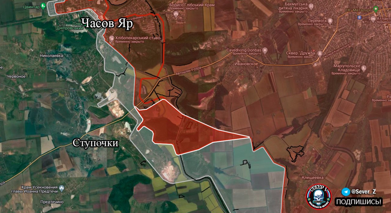 На южном фланге штурмовые подразделения ВС РФ заняли урочища «Ступки» и «Кринички» на участке шириной до 3,18 км на глубину до 1,3 км, накаты продолжаются в направлении южной части Часового Яра и Ступочек. В Часовом Яре идут бои за микрорайон «Новосеверный» и в застройке южнее «Часовоярского огнеупорного комбината».