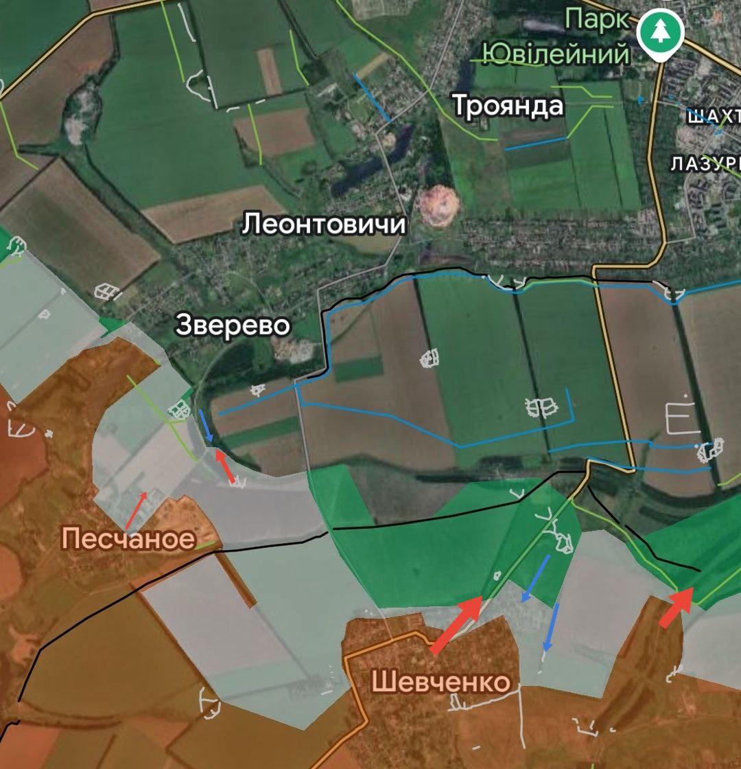 Песчаное – за нами, в Зверево идут позиционные бои. В Шевченко противник продолжает попытки атак в северо-восточной части. Южнее Удачного наши подразделения понемногу восстанавливают ранее занимаемое положение, пишет военкор Юрий Котенок.