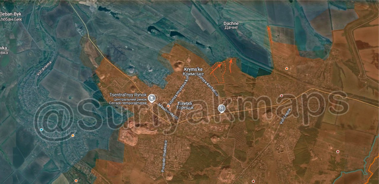 Торский выступ. Ситуация сложнее, чем сообщают некоторые картографы. Наши силы пока не вошли в само Торское, закрепившись у строений в районе рыбхоза. Активные бои ведутся в районе яра Бакай. Противник удерживает укреплённые позиции на восточном направлении, что осложняет наступление. С севера наши подразделения смогли зайти на окраину Торского со стороны Чёрного леса. Дальнейшее закрепление зависит от развития ситуации. Сам населённый пункт остаётся под контролем противника, отходов не зафиксировано.