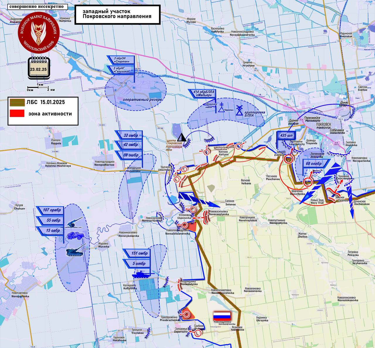 На Покровском участке продолжаются ожесточённые бои, носящие преимущественно позиционный характер. ВСУ перебрасывают резервы в попытке стабилизировать ситуацию. ВС России ведут огневое воздействие на передовые рубежи обороны противника. Также выявляются и уничтожаются склады боеприпасов, площадки ремонта и хранения техники в тыловых районах. Усиливается контроль над путями снабжения ВСУ, проводятся мероприятия по срыву ротаций.