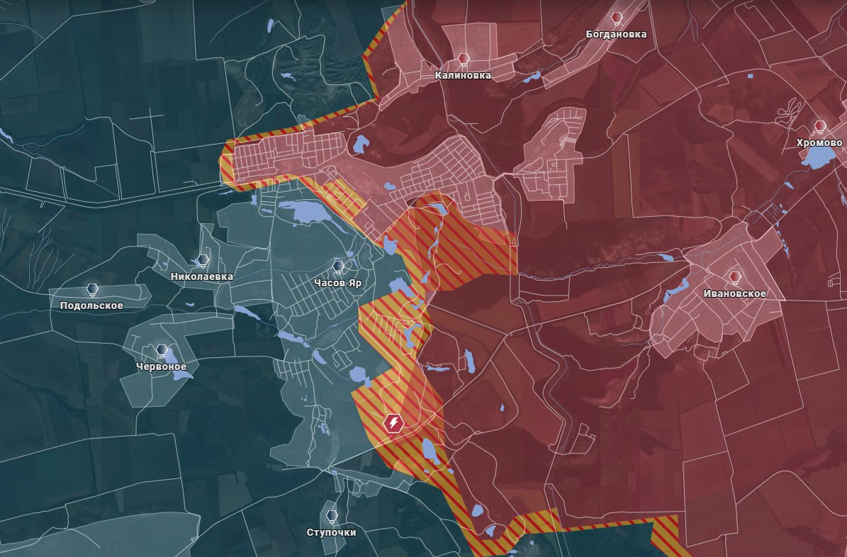 Северск. К востоку от Верхнекаменского российские войска расширили зону контроля, идут встречные бои. ВС РФ завершили зачистку домов в Белогоровке. ВСУ удерживают север и укрепления у карьера (шесть-восемь человек, два пулемёта). Бои продолжаются на «Расчёске».