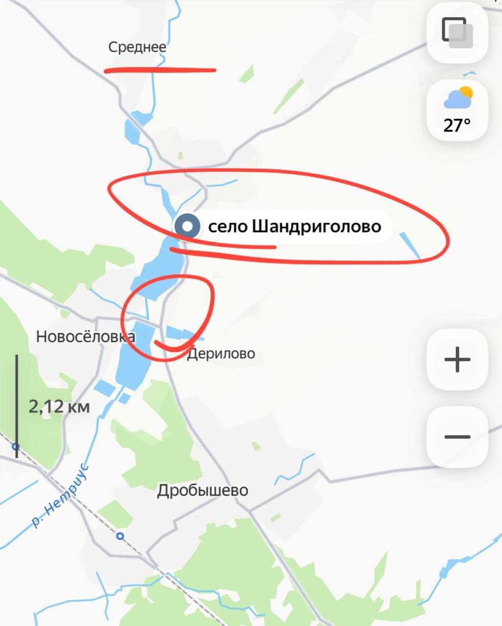 По оперативным сведениям наши войска продвинулись к южным окраинам Шандриголово, выйдя к переправе на Новосёловку. Параллельно с этим наши подразделения ведут бои в центральной части села Среднее. Тем самым Шандриголово, лежащее на берегу реки Нитриус, окружается и отрезается от снабжения. Однако без закрепления в Среднем и освобождения Дерилово говорить о полном окружении Шандриголово рано, пишет Телеграм-канал «Шторм».