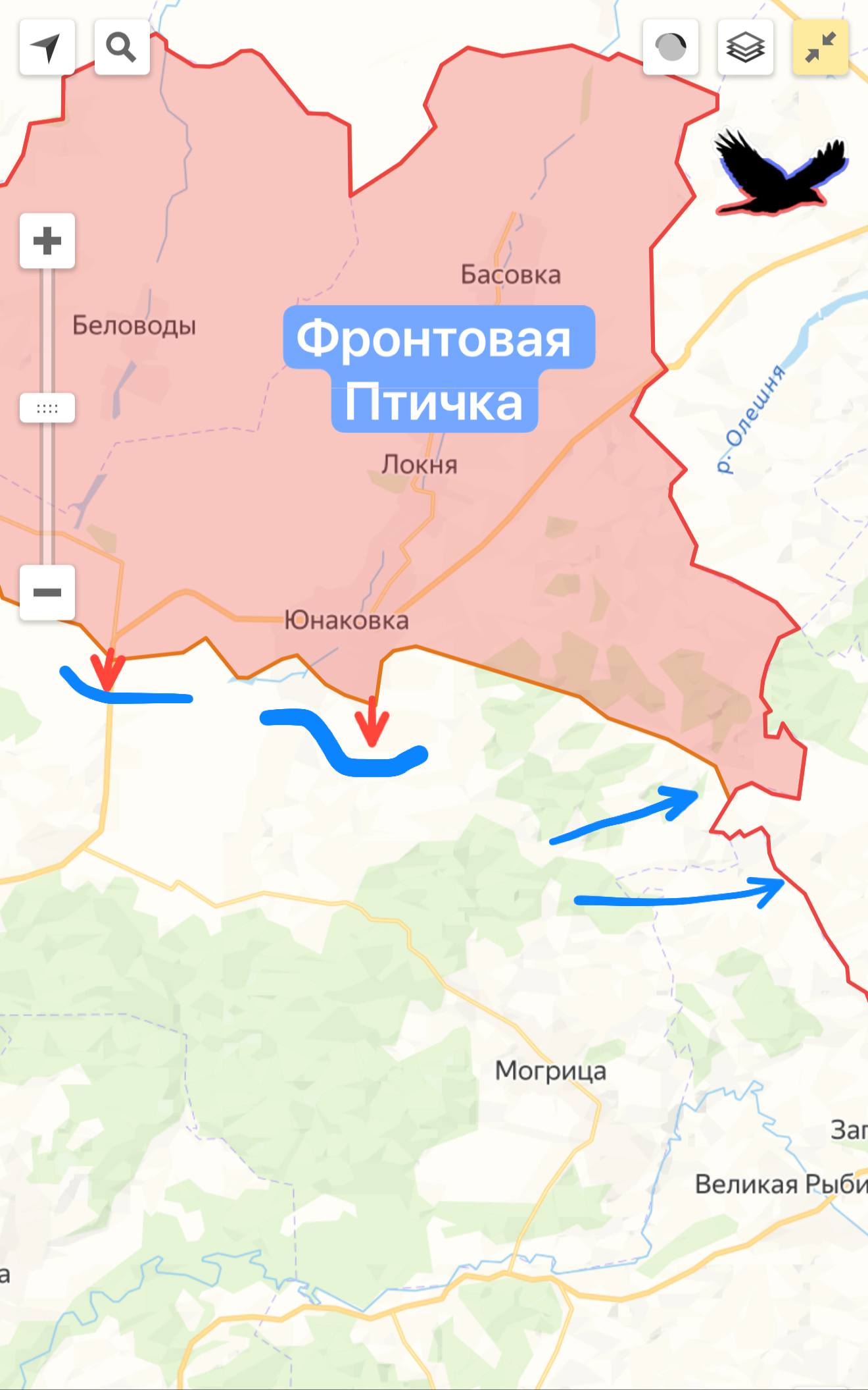 На Сумском направлении в районе Юнаковки наши спецназовцы и разведчики активно бьют противника, организуя плацдарм для дальнейшего активного наступления. Между тем, восточнее от Юнаковки боевики пытались зайти в Курскую область используя несколько единиц бронетехники и до 1 взвода личного состава. Попытка прорыва была успешно отражена ВС РФ.