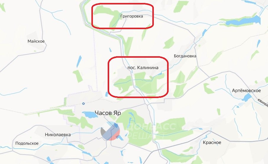 Севернее Часова Яра российские подразделения продвигаются вдоль водоканала Северский Донец – Донбасс в районе Григоровки, сообщают военные паблики. По всей видимости российское командование таким манёвром рассчитывает осуществить более широкий охват Константиновки, пишет Телеграм-канал «Донбасс решает».