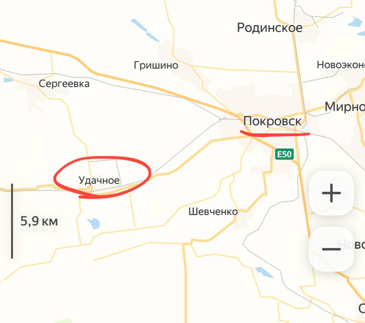 А военкор Тимофей Ермаков пишет, что по поступающим оперативным данным наши войска смогли закрепить прорыв в южной части Удачного под Покровском. В данный момент бои идут за железнодорожную станцию «Удачная», а также в районе станции 377 км на востоке посёлка.