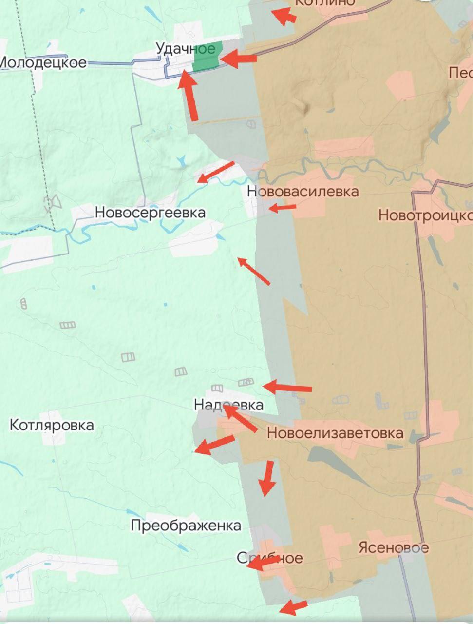 Южнее Удачного и западнее Солёного наши подразделения продвигаются в направлении Новосергеевки. Западнее Новосергеевки находится мост через реку Солёная. Через этот мост проходит один из логистических маршрутов между Новопавловкой и Удачным.