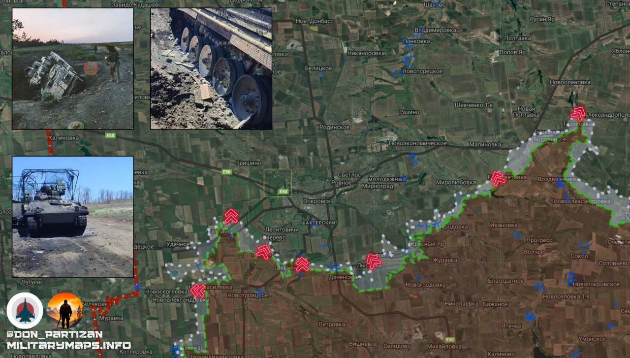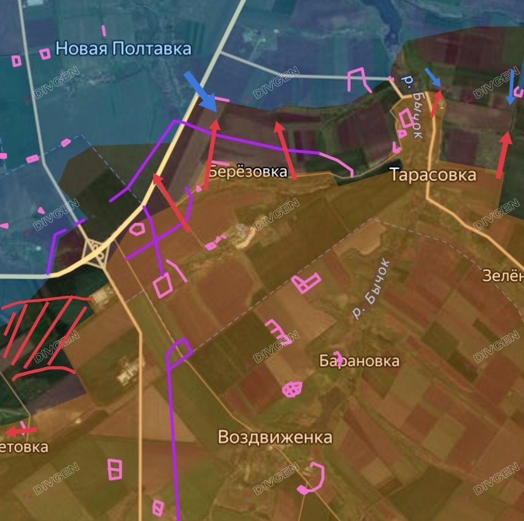 Наши подразделения после взятия под контроль Берёзовки продвинулись по посадкам севернее. В северной части Тарасовки продолжаются встречные бои. Восточнее Тарасовки наши подразделения немного продвинулись в направлении Александрополя.