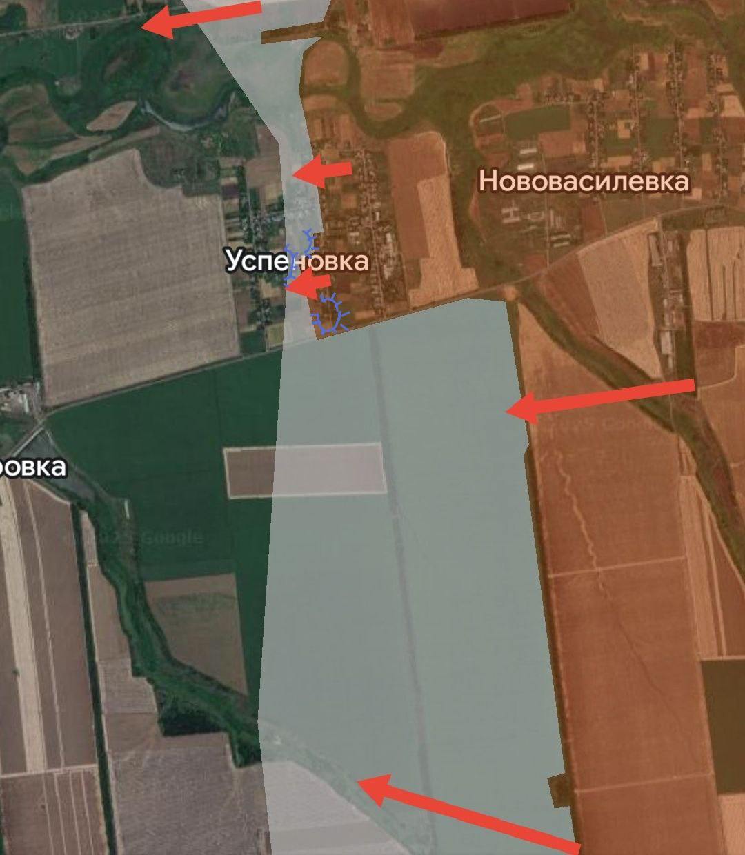 Ожесточённый бой сегодня шёл севернее Черкасской Конопельки и Фанасеевки на дороге у автозаправки «Лотос» – с применением гранатомётов, FPV-дронов и артиллерии. Также наши атаковали в районе дамбы на нескольких БМП, высадились в ближних лесополосах и пытаются в них закрепиться.