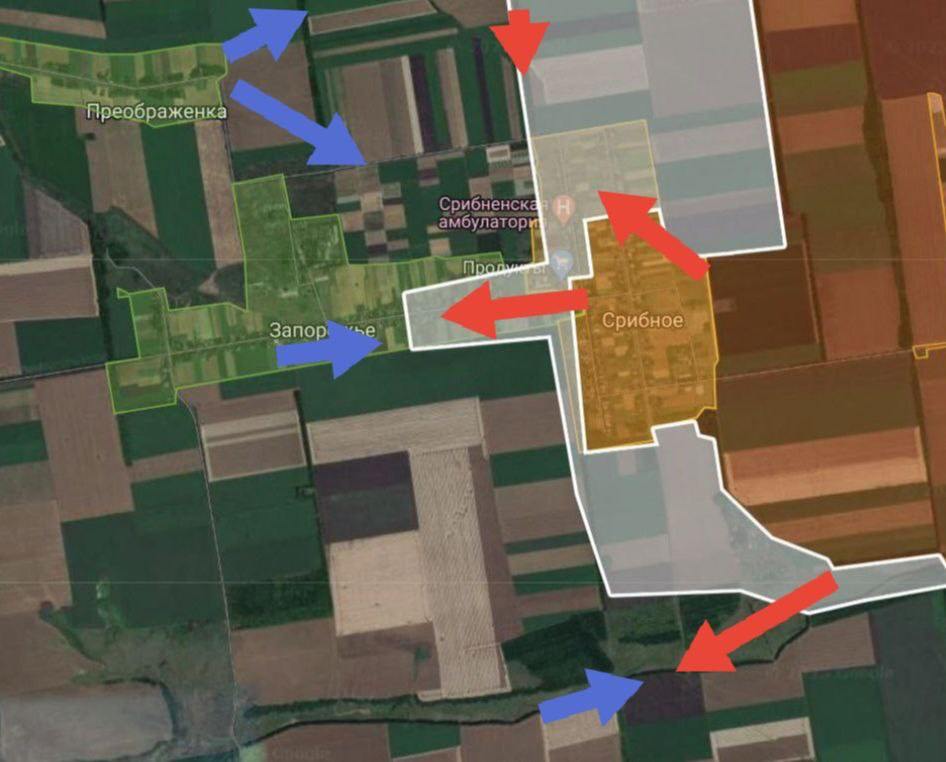 В Срибном противник ещё сохраняет присутствие в северо-западной части и посадке севернее. Наши штурмовые подразделения выбивают всушников из Запорожья (ДНР), в котором продвинулись западнее школы.