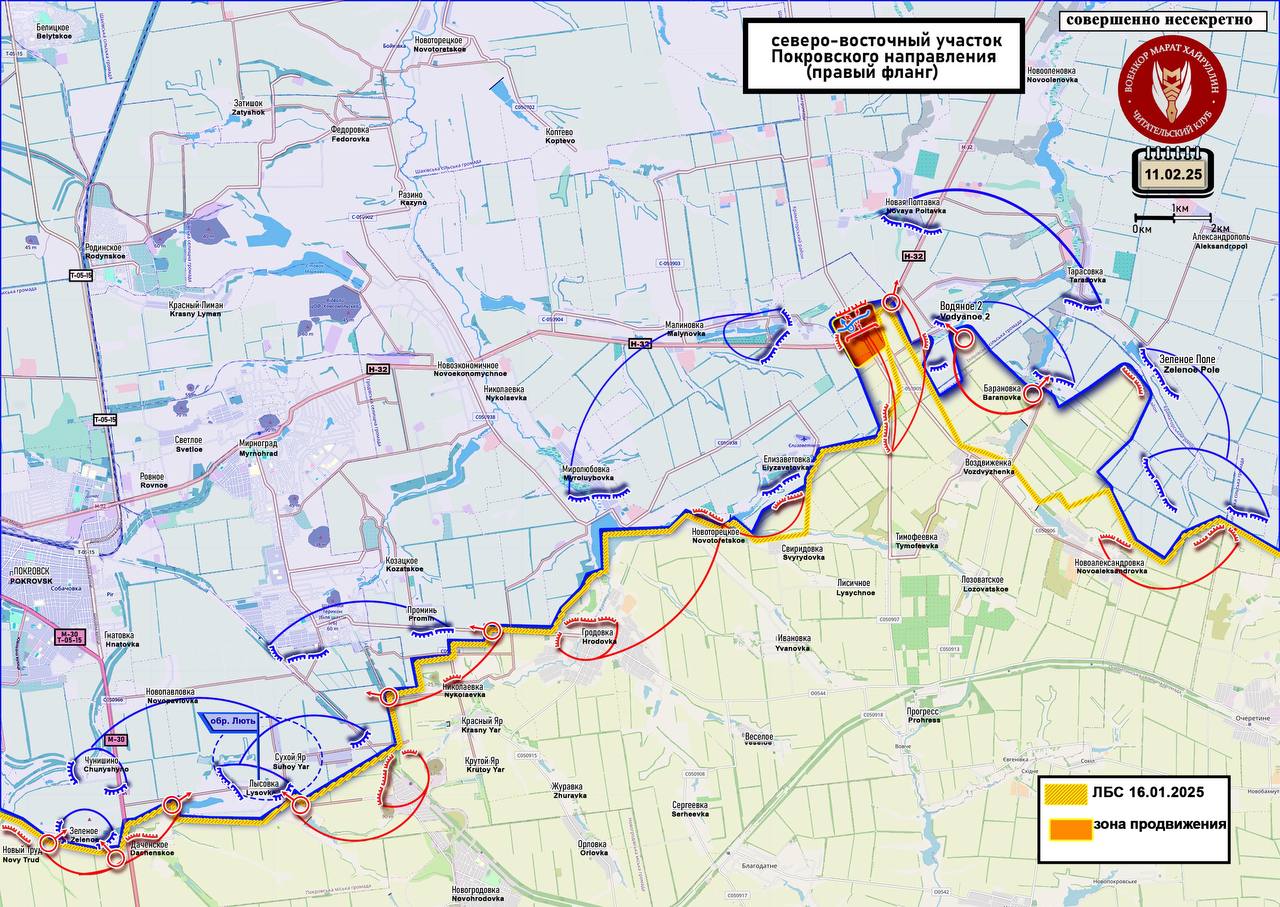 На правом фланге Покровского участка наши бойцы закрепились в районе эстакады дорожной развязки на трассе Покровск – Константиновка, получив позиции для развития наступления на противника в направлении населённого пункта Малиновка. Это позволяет расширить контроль вдоль трассы и усложняет снабжение передовых позиций ВСУ.