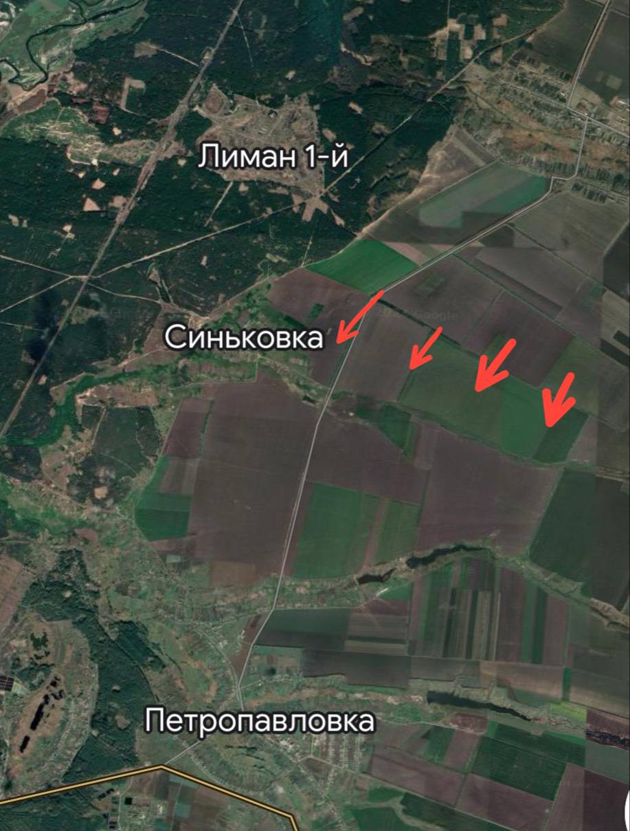 Восточнее Синьковки наши бойцы продвигаются и закрепляются вдоль лесополок, примыкающих к самой Синьковке, а южнее есть продвижение широким флангом.