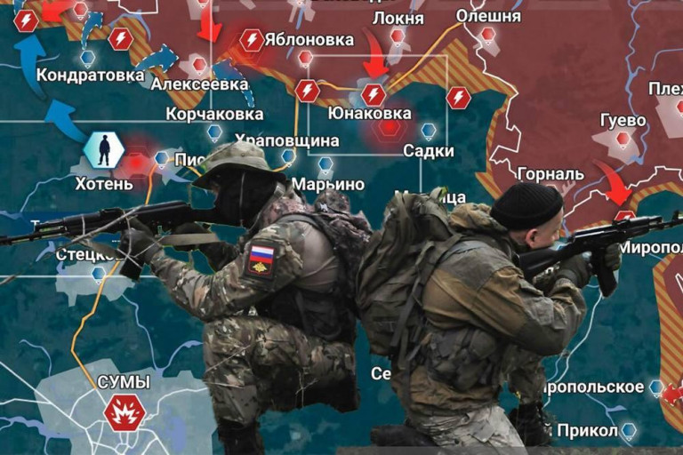 На Сумском направлении российская армия увеличивает интенсивность нанесения ракетных и авиационных ударов по позициям противника. Штурмовики группировки войск «Север» продолжают продвижение в Юнаковке. ВСУ снизили активность и проводят ротацию понесших потери подразделений. В Юнаковке штурмовые подразделения ВДВ с тяжёлыми боями продвинулись на 200 метров в юго-западном направлении и заняли два здания. Противник предпринял одну попытку контратаки в районе Алексеевки силами, успеха не имел, с потерями отошёл на исходные позиции.