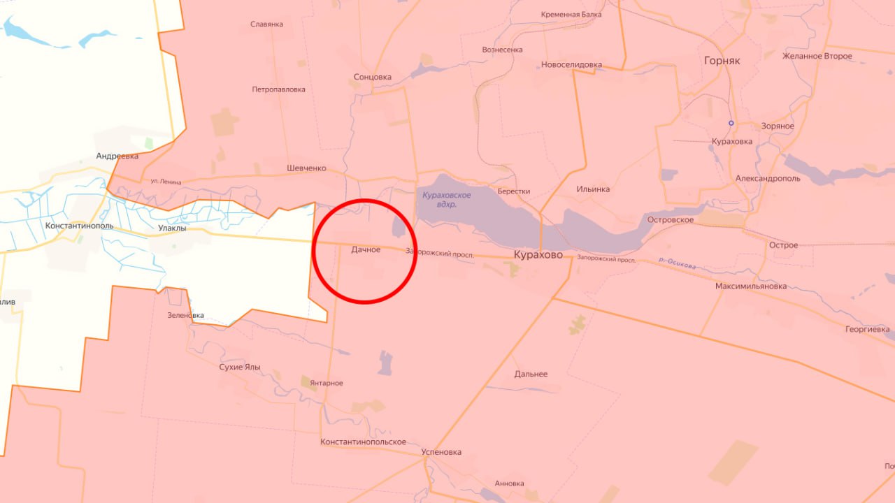 С Кураховского направления приходят сообщения, что наши подразделения закрепились в застройке на юго-западе Дачного, а противник покинул этот населённый пункт, отойдя в Улаклы. Фактически это означает захлопывание кураховского «кармана». При этом и в районе Улаклы давление на оборону ВСУ усиливается. Развивая успех в Андреевке, где бои идут в западной части, и, усиливая натиск в направлении Константинополя, российская армия формируется всё более плотное огневое кольцо на этом участке. Также в направлении Улаклы постепенно расширяется контроль и северо-восточнее Зеленовки.