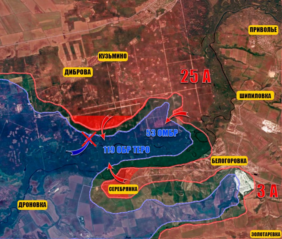 Кременная. После того как ВС России освободили Серебрянку, 53-я отдельная механизированная бригада ВСУ предприняла три контратаки южнее н.п. Червоная Диброва силами трёх сводных групп. Все атаки были отбиты, противник понёс потери до 30 человек убитыми и ранеными.