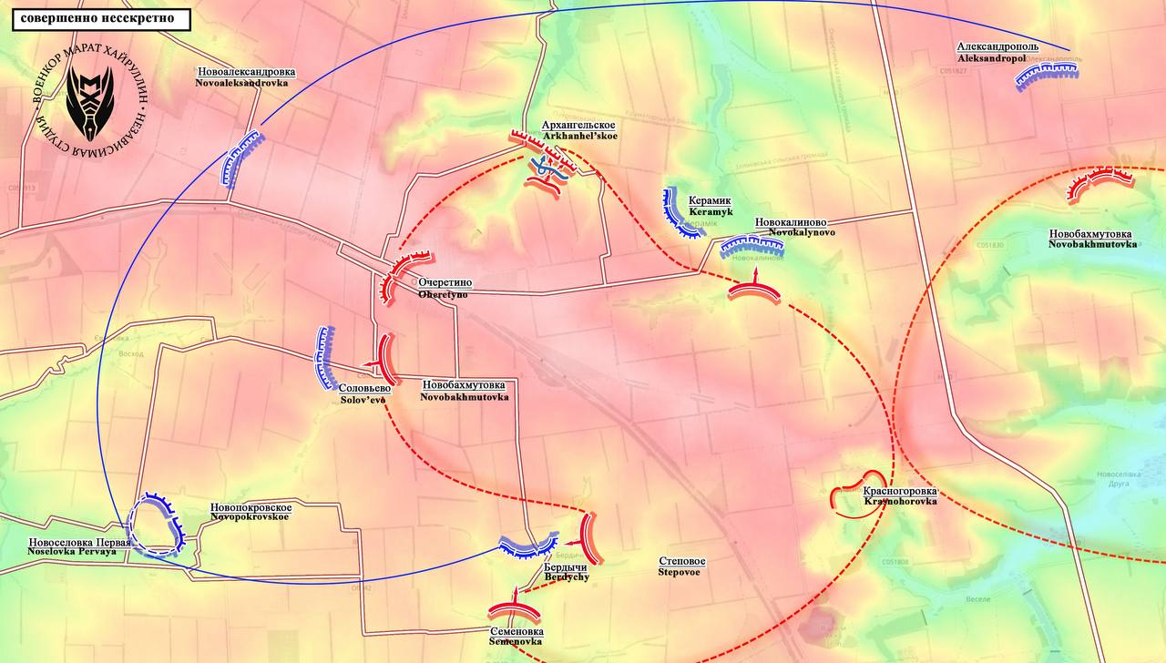 На Артёмовском участке главным событием апреля стал прорыв в Часов Яр и начало боёв за него в восточной части города. Взятие под контроль Ивановского к югу и Богдановки к северу позволило вести охват города единой дугой. За Часовым Яром – выход к знаменитой, некогда «третьей» линии обороны ВСУ – бои идут уже на дальних подступах к ней.